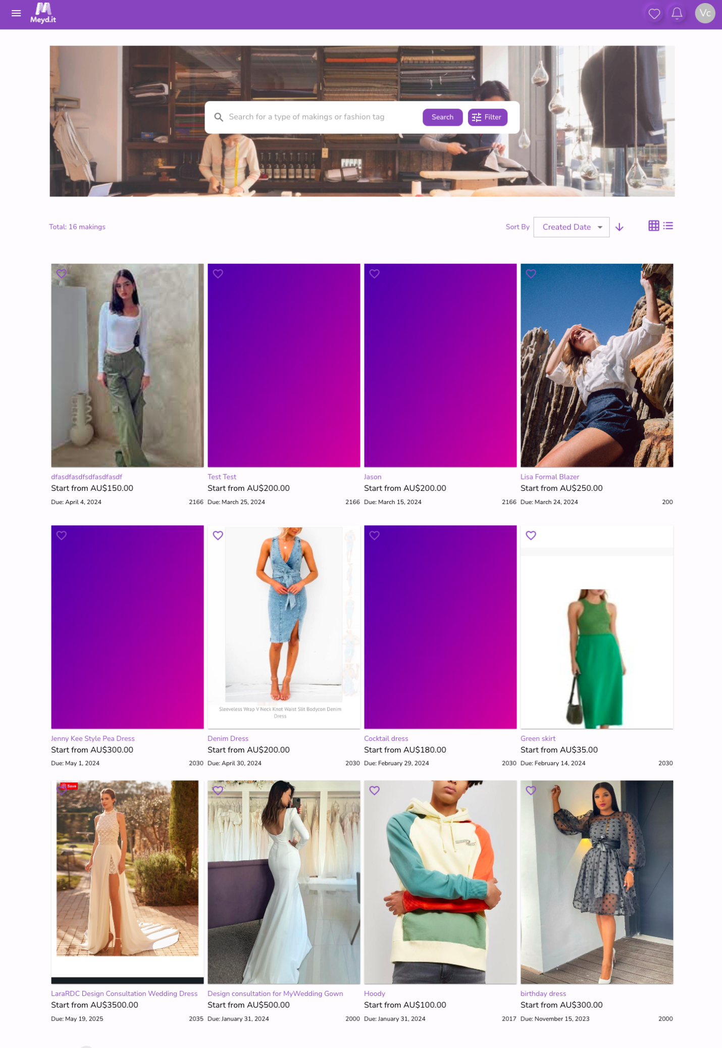Meyd.it, an Australian slow fashion start up, seeks to connect small fashion businesses with clients who value slow fashion and may want clothing specifically tailored for them . The goal of this project was to make the website more user friendly. The current user base is quite small, sitting at 100 users around Sydney, but designs were made in mind for a world-wide user base.