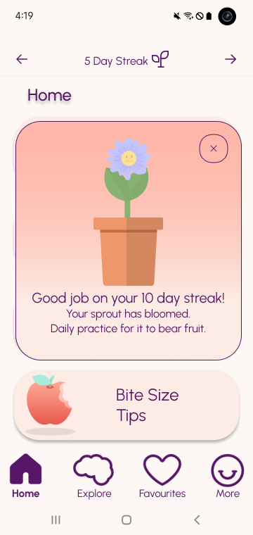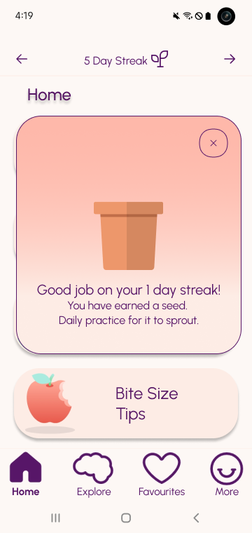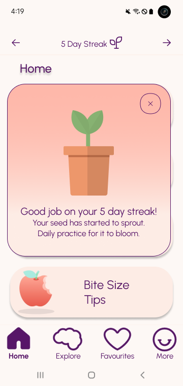 The streak system, inspired by successful models like Duolingo, emerges as a motivational cornerstone. Tailored to accommodate varying user habits, it strives to instill a sense of daily commitment, transforming mental wellness into a habitual practice rather than an occasional endeavor.